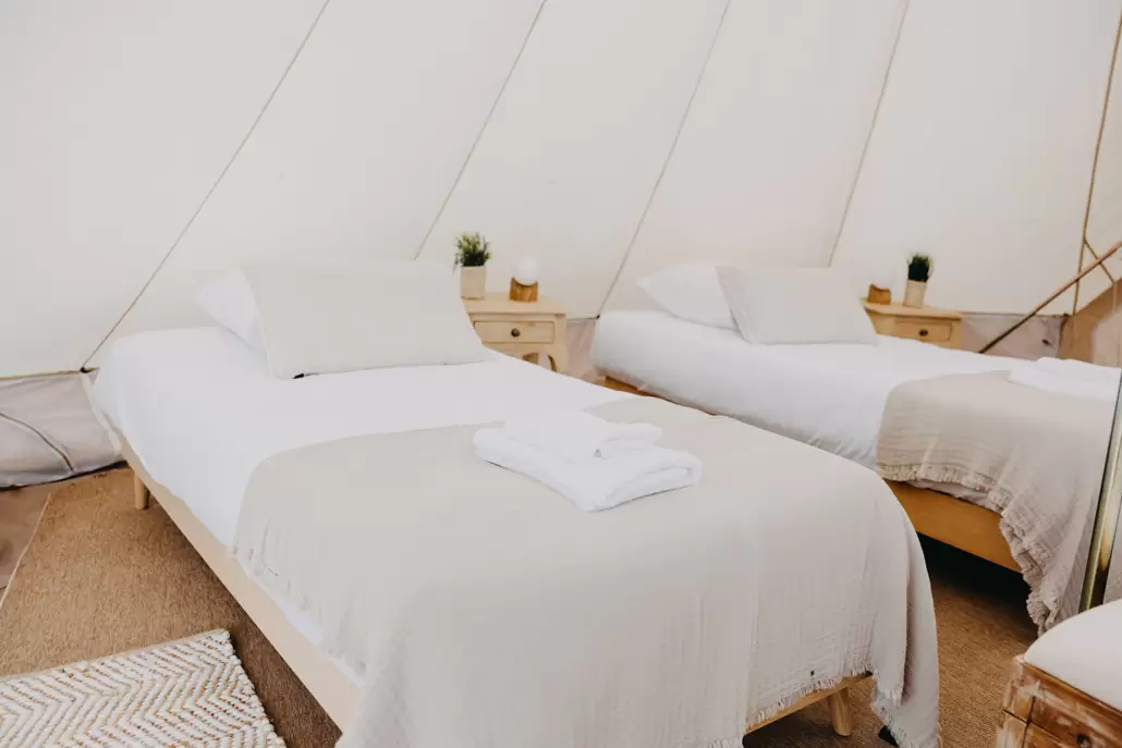 • 2 salles de bain à partager avec 2 autres tipis ; sèche cheveux à disposition