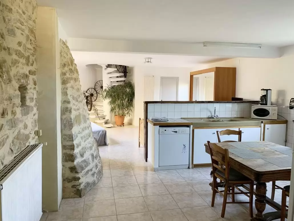 Dans un environnement bucolique et parfaitement champêtre, vous bénéficiez d’une petite terrasse à l’entrée du gîte, de laquelle vous pourrez apercevoir le Clos du Tuilier au loin. Ce logement est spacieux et charmant avec son mur tout en pierres apparentes et sa grande cuisine ouverte sur le salon.