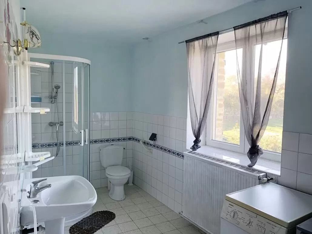 - La salle de bain est accessible par la chambre (douche cabine, vasque simple et plusieurs rangements).